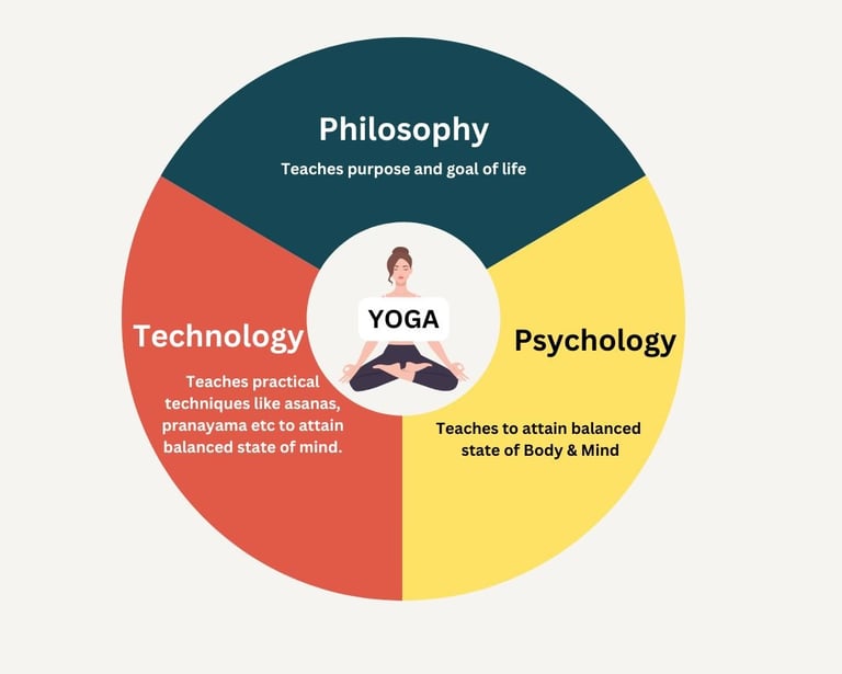 Yoga is a science of Awareness - covering the streams of psychology, philosophy and technology. The psychology of yoga teaches the balanced state of body and mind. The philosphy of yoga teaches the purpose and goal of our life. The technology part of yoga includes various practical techniques like asanas, pranayamas, kriyas etc which helps us to attain the balanced state of the body and mind. (as said by Hansaji - Director Yoga Institute).As a human being we are affected by several emotions which are either positive or negative, where both these emotions affect our mind. It is said that the root cause of any disease or illness is our mind.If we keep our mind strong, we can face and overcome any adversity or illness that affect us in our life.