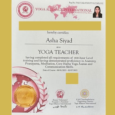 However, my dedication did not stop there. Eager to delve deeper, I enrolled in a Yoga Teacher Training course of 300 hours in another center located in Al Nahda, closer to Muhaisnah. This was a turning point for me—it was here that I began to understand the mystical Sanskrit texts with the help of my teachers and grasp the essence of true yoga. My journey continued with 100 hours of Kids Yoga Teacher Training and 500 hours of Advanced Yoga Teacher Training by 2023. Upon completing these certifications, I started offering yoga classes to a few neighbors, and I am elated to share that these students are still practicing with me for almost 1.5 years now.